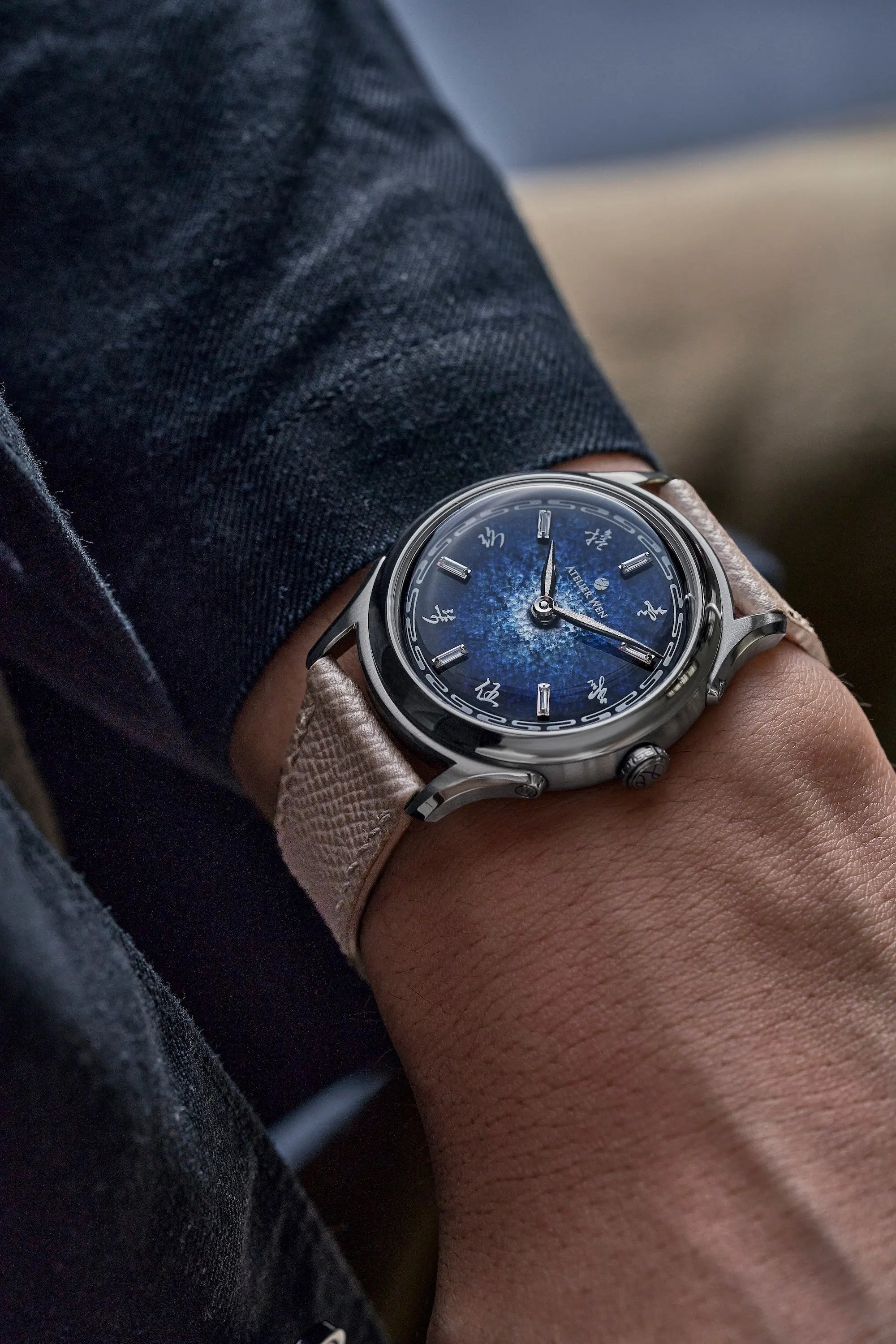 A portrait of refined elegance, the launch edition of our dress watch features a hand-hammered, grand feu enamel dial crafted by the workshop of 孔令俊 Kong Lingjun, the foremost enamel dial atelier in China. Its elaborately constructed 904L steel case houses a state-of-the-art, heavily customised Pequignet Calibre EPM03, and is decorated to extensive detail in a variety of finishes.