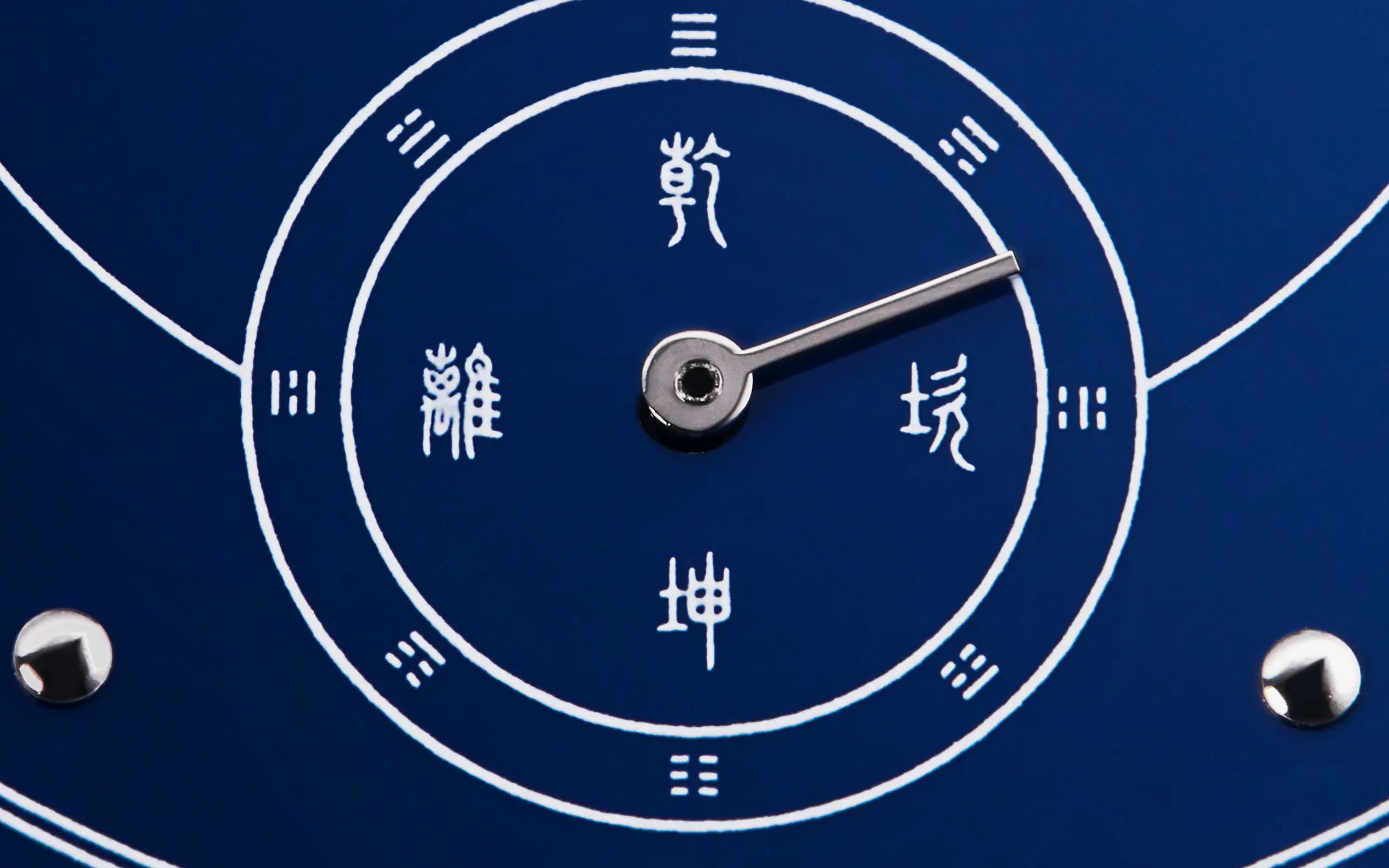 Jì’s sub-dial at six o’clock is particularly intricate and pays homage to the Chinese concept of 八卦 (bā guà) or "Eight Trigrams"; an elemental demarcation of balance between the forces of yin and yang. It is used among other things as a traditional representation of time, with the four central characters, 坤 (kūn), 离 (lí), 乾 (qián), 坎 (kǎn)