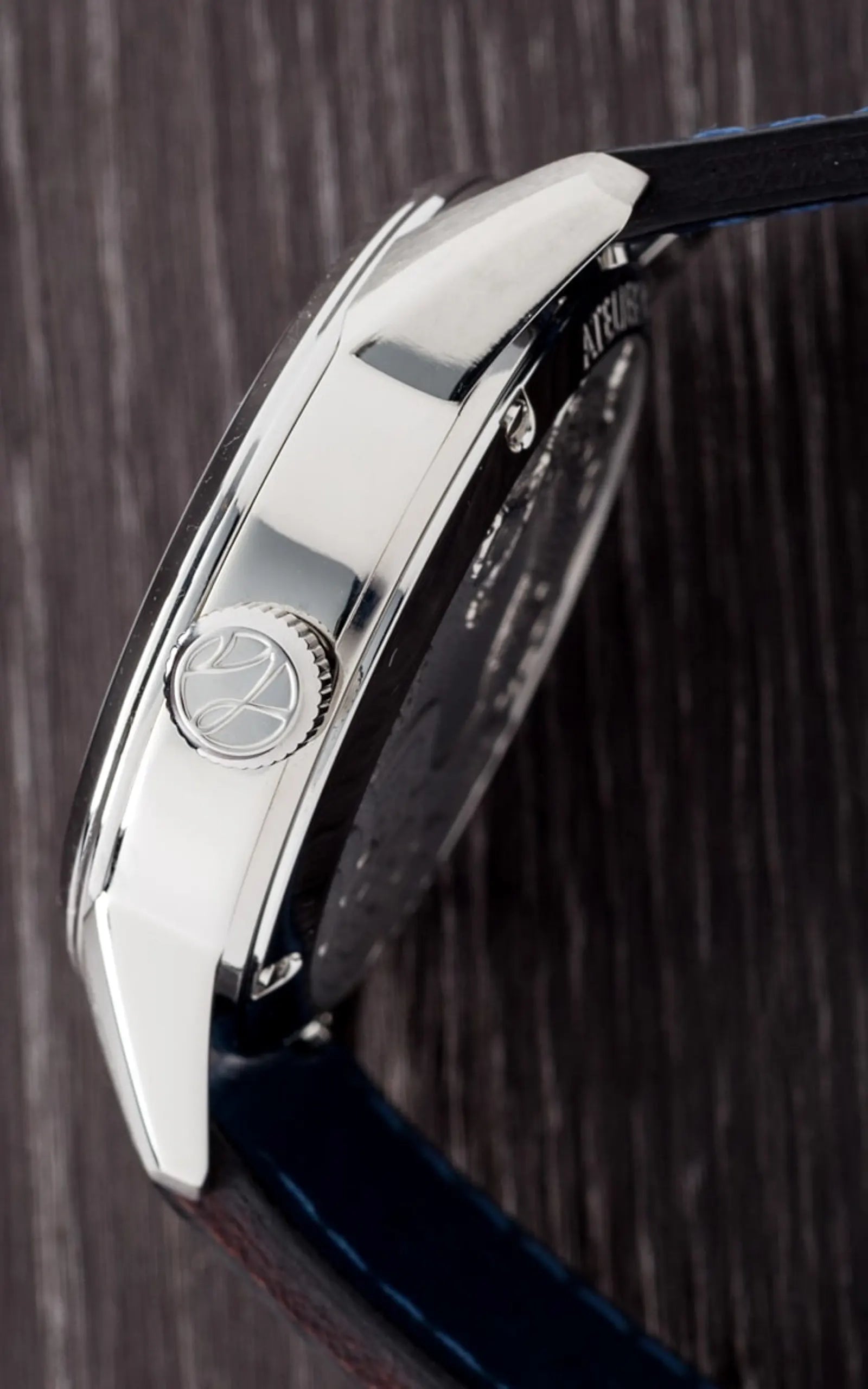 It features a well-knurled push-pull crown that is signed with a deep embossing of our logo.