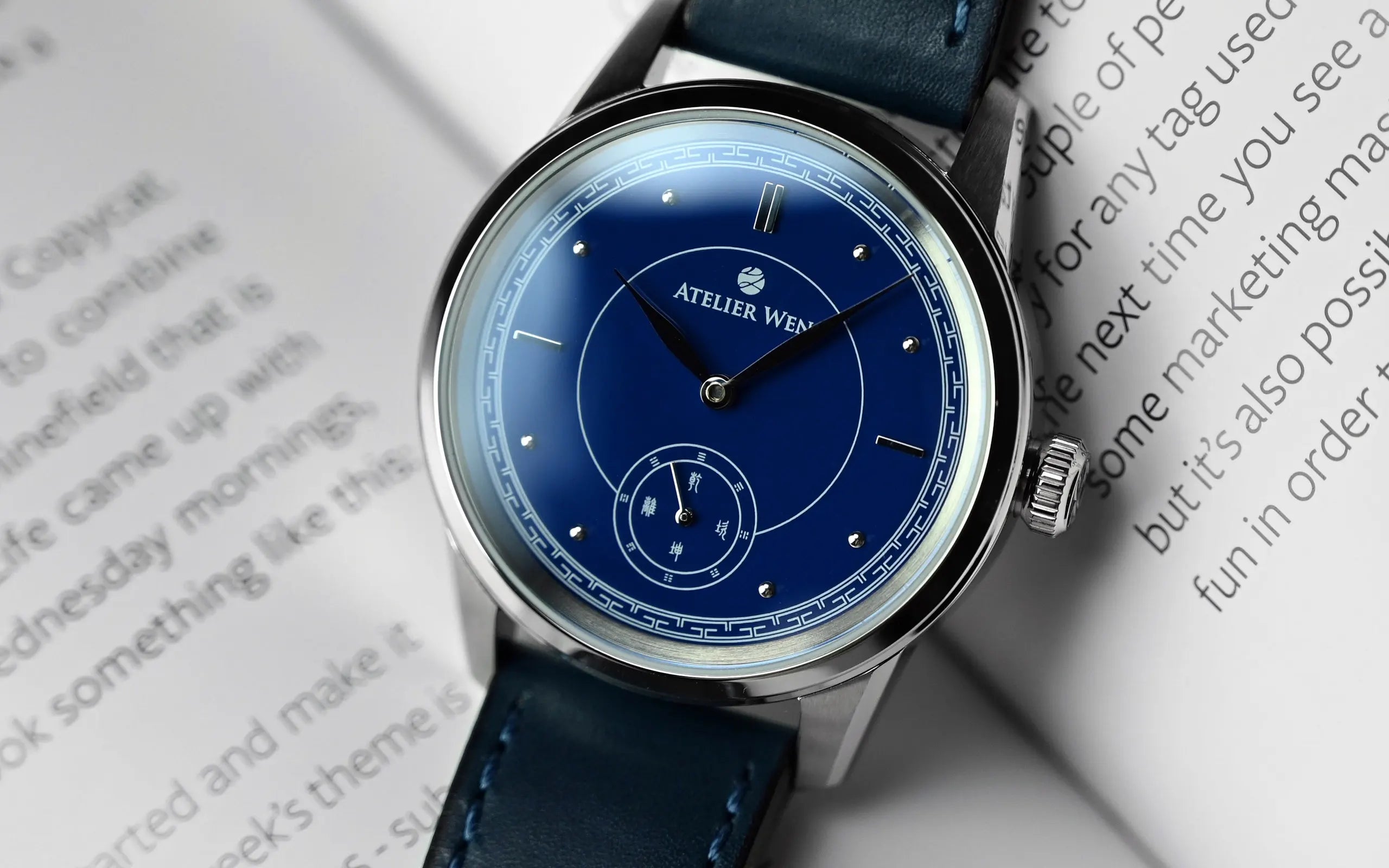 The case-back found on Jì is one of the most striking aspects of this collection. It represents a deeply-embossed figure of an animal of Chinese legend, the 鲲鵬 (kun peng). Said to be a colossal bird with the ability to turn into an aquatic being , it is used as an allegory for the concept of yīn yáng. Rather than being separate entities, kun and peng are simply two sides of the same element. And in much the same way, our goal with Atelier Wen is to break down the shallow dichotomies that draw trivial lines between East and West, and in doing so, combine the experiences of both to form a greater, more meaningful whole.